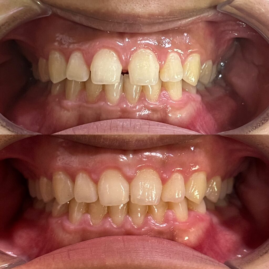 【症例2】すきっ歯(正中離開)— 前歯の隙間が写真で目立つ
